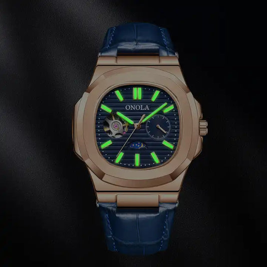 ONOLA Classic Automatic Moonphase Easy Read Leather Watch